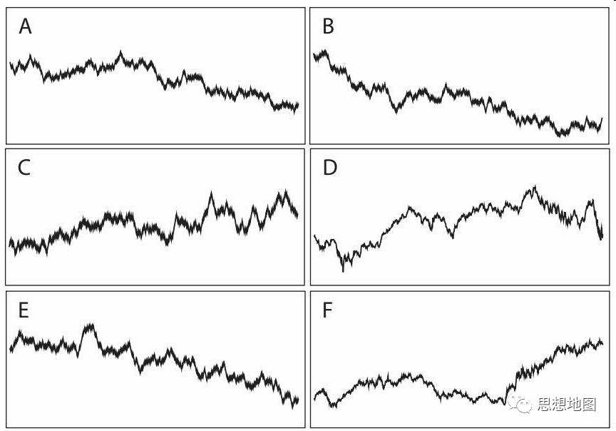 有个研究,用扔硬币的方法,随机画了若干股票走势图(就是上图),拿给股票技术分析师看,那些技术分析师一看:这几个是什么股票,走势非常好,要赶紧买入!投硬币的走势图,还能分析出来趋势,这是多数技术派的问题,因为人天生的思维方式就是想从随机里找出规律,找因果关系。事实上很多事情就是随机,不是规律,人只是自以为找到了规律。(这还是对随机性的理解)